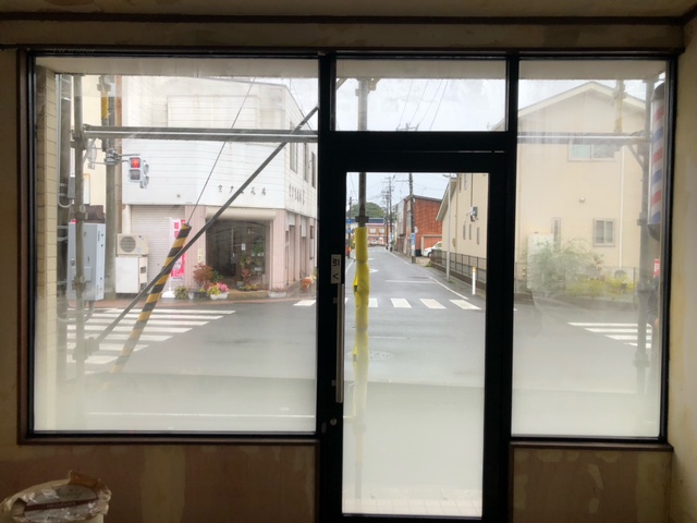 店内の隠したい部分にグラデーションの濃い部分を貼り、閉寒感なくスッキリと店内の目隠しをしました。
